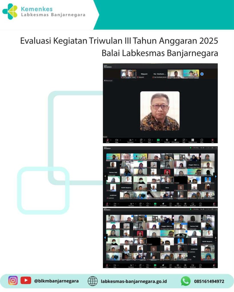 Evaluasi Triwulan III ini diharapkan mampu memperkuat komitmen bersama seluruh unsur Balai Labkesmas Banjarnegara dalam mewujudkan tata kelola organisasi yang akuntabel dan berkinerja tinggi. Dengan dukungan sumber daya yang kompeten serta perencanaan yang matang, balai optimistis dapat menyelesaikan seluruh agenda kerja tahun 2025 dengan hasil maksimal.